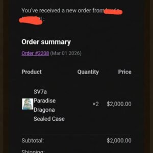 Very satisfied with my order from Tokyo TCG Warehouse. The SV7a Paradise Dragona sealed cases were exactly as described and the ordering process was smooth. Excellent service and communication. Highly recommended!” — Louis, France 🇫🇷