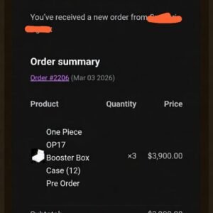 Excellent experience ordering from Tokyo TCG Warehouse. The OP17 booster box case pre-order was easy and the communication was very clear. Very reliable seller and I’m looking forward to receiving my order!” — Sundari, Indonesia 🇮🇩