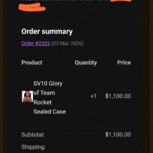 I’m very satisfied with my order. The SV10 Glory of Team Rocket sealed case arrived safely and everything was exactly as described. Great communication and smooth shipping process. Highly recommended!” — Gabriel, Germany 🇩🇪